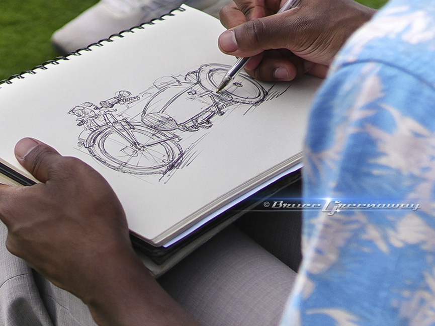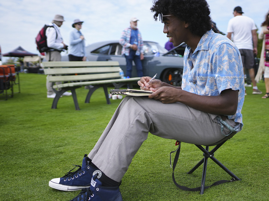 Cobble Beach Concour brings out all kinds of enthusiasts, many photographers and even the occasional “artist” artist… like this young man, who brought a stool, sketch pad and a set of pens – and created art …from art, super cool…
