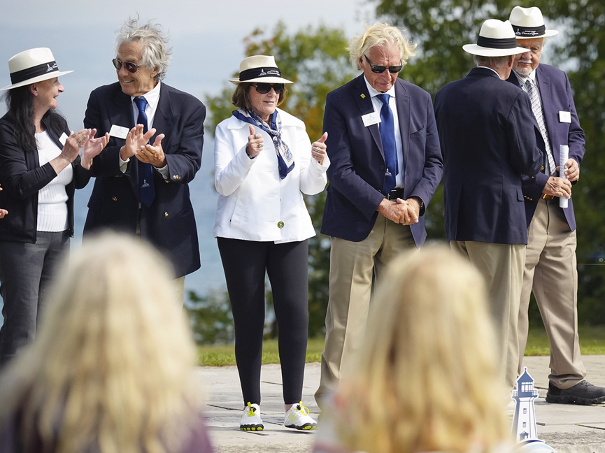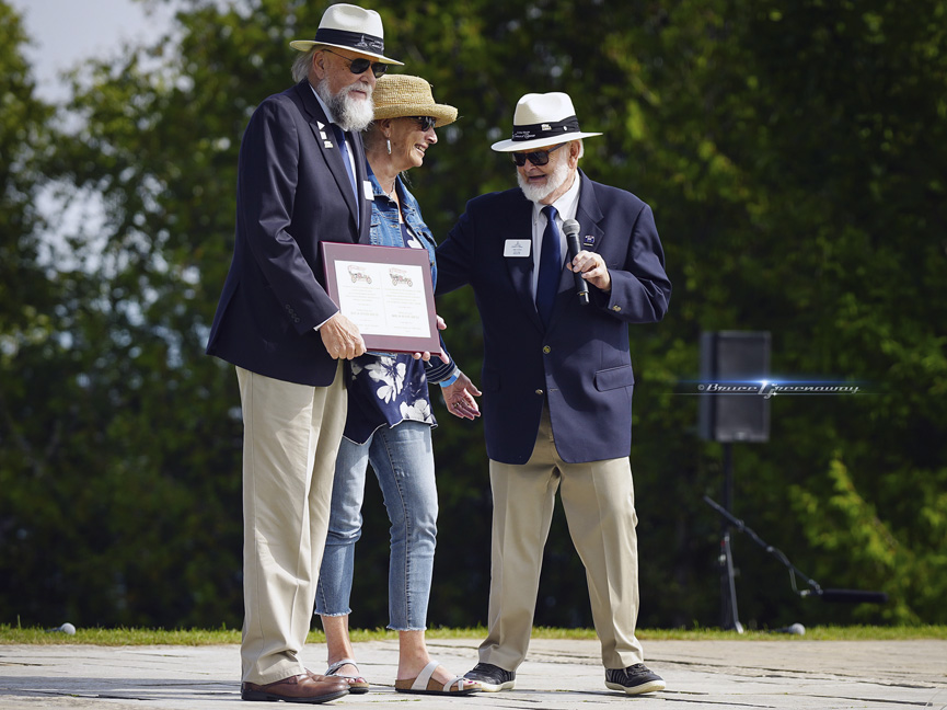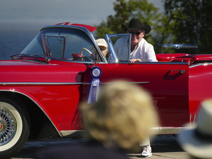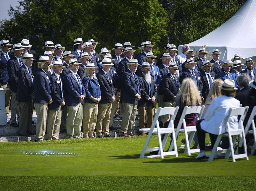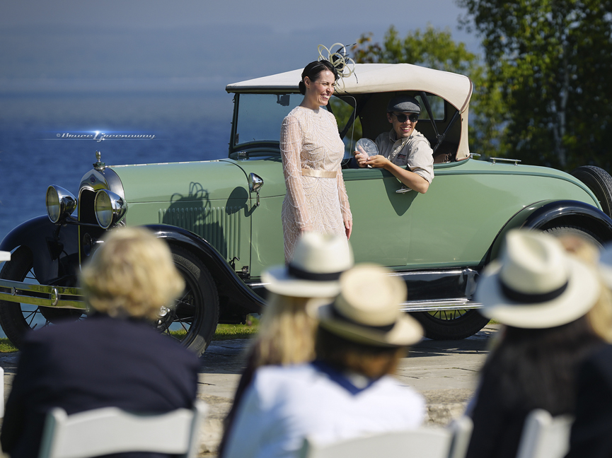 After both National Anthems, the Judges & honoured guests gather to be formally recognized before the cars and bikes are called up, one-by-one, (by that mysterious voice behind Cobble Beach Concours d’Elegance) to receive their awards, pose for photos, take a bow and continue proudly through the winners podium, around the judge’s corral and past the spectator’s gallery on the surrounding hills in behind.